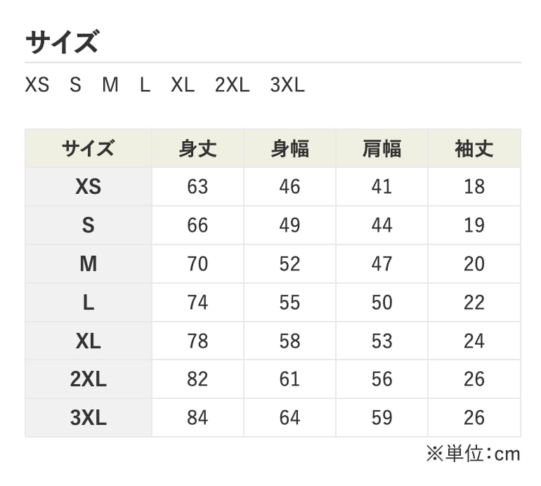 ・サイズ:XS/S/M/L/XL/2XL/3XL